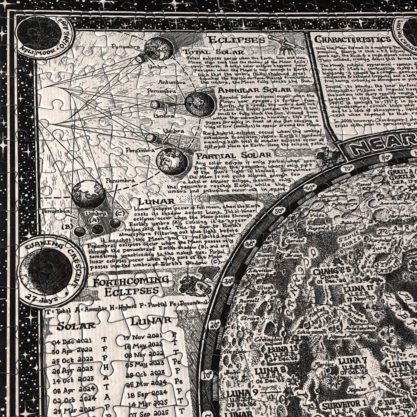 Explore the Moon like never before with this striking 1000 piece jigsaw puzzle, based on the artist’s incredible Moon Map.