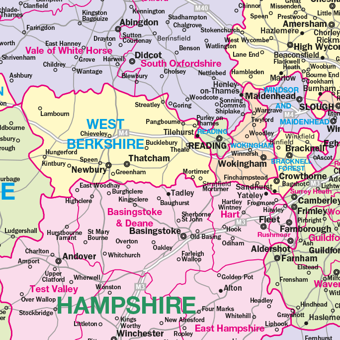 The recently published edition of the Counties map reflects the most recent administrative changes. This map shows all the County, District and Unitary Authority boundaries within the United Kingdom. The divisions of each County into its local District Council areas are clearly shown. Each administrative area is shown in a different colour to its neighbours, making it easy to decipher where the boundaries lie. The map base shows motorways and primary roads (with more detailed roads on the London inset) and features seven types of town/citystamps based on population ranging from 2,000 to 1,000,000+ inhabitants.